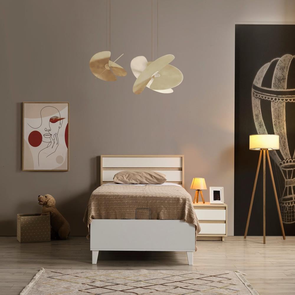 - لون هادئ: يتميز السرير بلونه الأبيض الذي يناسب مختلف أشكال الديكورات الداخلية، والذي يخلق تباين جمالي جاذب للأنظار مع لون الخشب الطبيعي.