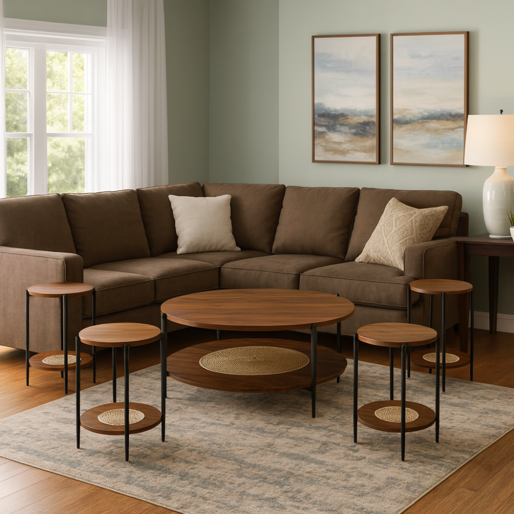 أضيفي لمسة من الأناقة العصرية إلى غرفة المعيشة مع طقم الطاولات “أورا” المكون من طاولة قهوة كبيرة وأربع طاولات جانبية عملية. تصميمه يجمع بين الخشب الدافئ والهيكل المعدني الأسود ليمنح توازنًا مثاليًا بين الفخامة والحداثة. السطح الخشبي يمنح الطاولات طابعًا طبيعيًا راقٍ، بينما تضيف الطبقة السفلية بتفاصيلها البسيطة لمسة من التميز والوظيفية في آنٍ واحد.