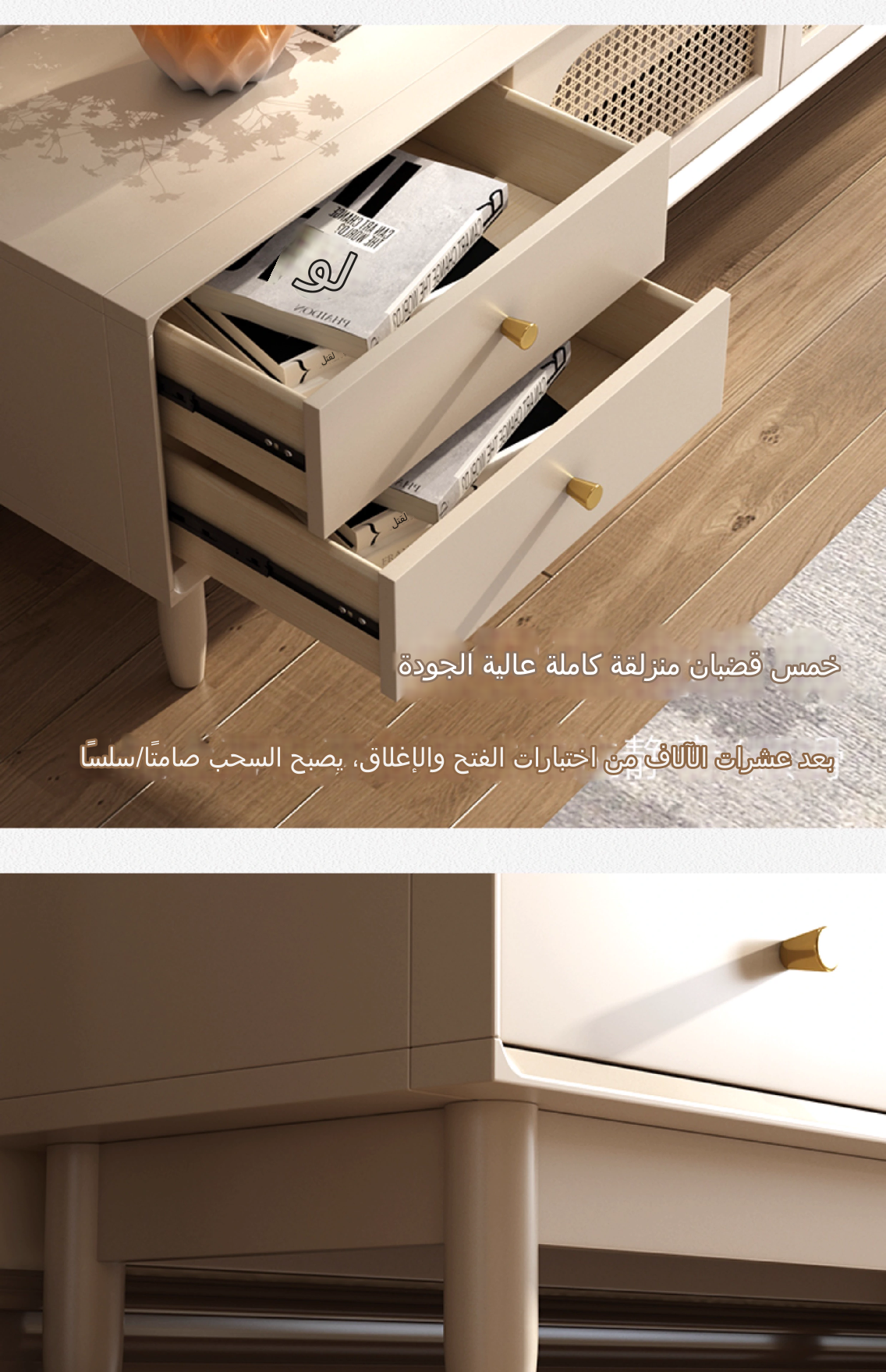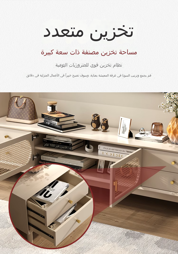 أضف لمسة من الجمال والأناقة إلى غرفة المعيشة مع هذه الطاولة الجانبية المصممة بعناية لتجمع بين الطابع الكلاسيكي والتصميم العصري الأنيق. بمزيج من الخشب الصلب والتفاصيل المميزة، توفر الطاولة حلولًا عملية وديكورية في آنٍ واحد. مع مساحة واسعة للتخزين وسطح كبير لعرض التحف أو التلفاز، تعد هذه القطعة المثالية لإكمال ديكور غرفة المعيشة أو الصالة.
