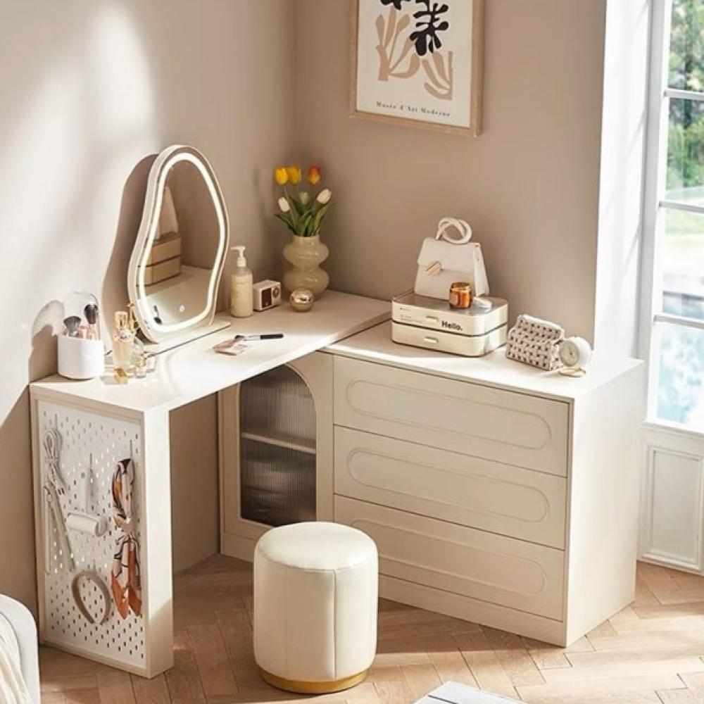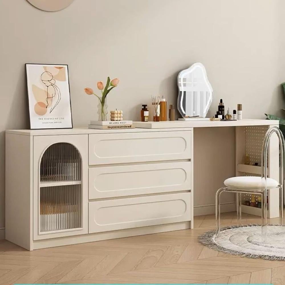طاولة تزيين بتصميم نيو كلاسيك تجمع بين الفخامة والأناقة مع لمسات حديثة. تتميز باللون الكريمي الراقي الذي يضفي جمالًا هادئًا على الغرفة، وتصميم بسيط مع تفاصيل دقيقة تناسب الديكور العصري والكلاسيكي على حد سواء.