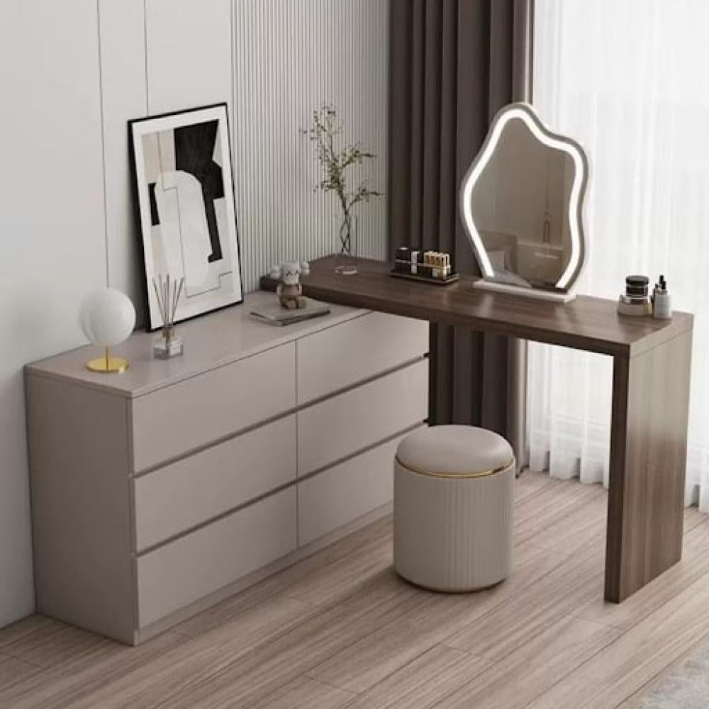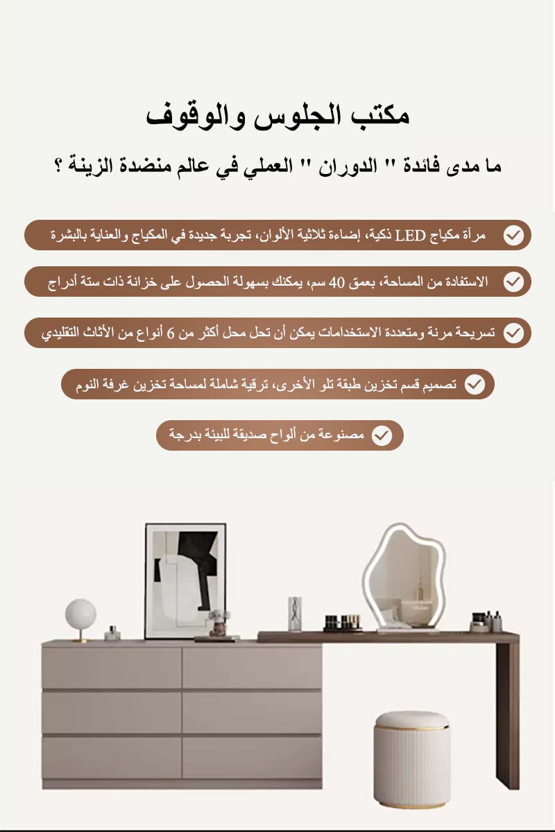 متعددة الاستخدامات: يأتي المنتج على هيئة 2 قطع، الأولى هي رف التسريحة، الثانية هي أدراج التخزين،
