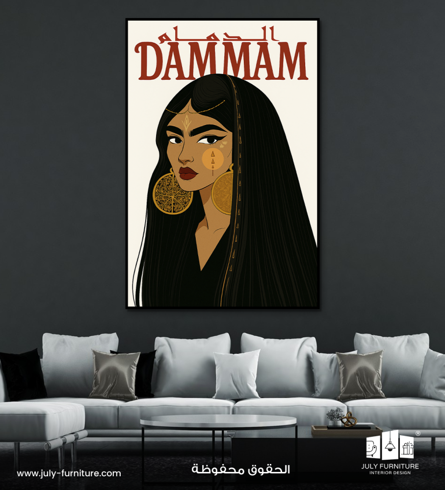 لوحة جدارية فنية تجمع بين الحداثة والهوية الشرقية، تُبرز ملامح الجمال العربي بلمسة فنية أنيقة تعبّر عن مدينة الدمام وروحها النابضة بالحياة.