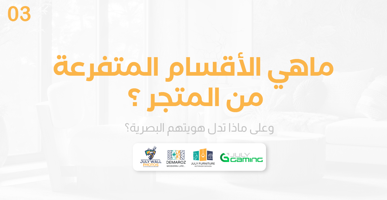 Our visual identity reflects modernity, elegance, simplicity and purity. The visual identity includes a simple and distinctive logo, which is a group of 3 different shapes, which are the "gift", "lighting" and "couch" shapes, to express the modernity and specialization of our store.