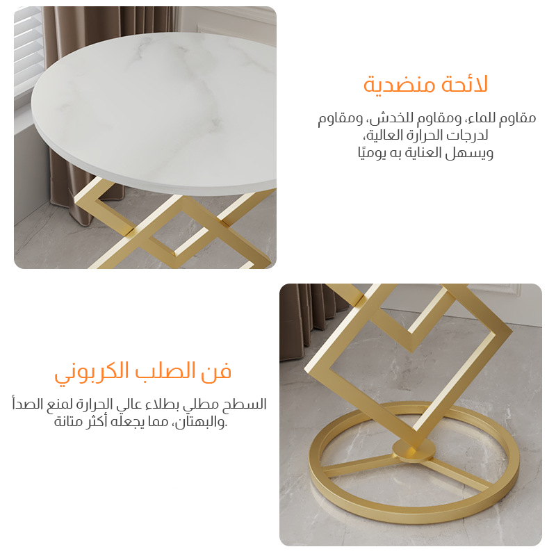 - سطح الطاولة مصنوع من الرخام عالى الجودة، والقاعدة مصنوعة من المعدن الصلب والطلاء الذهبي المقاوم للصدأ .